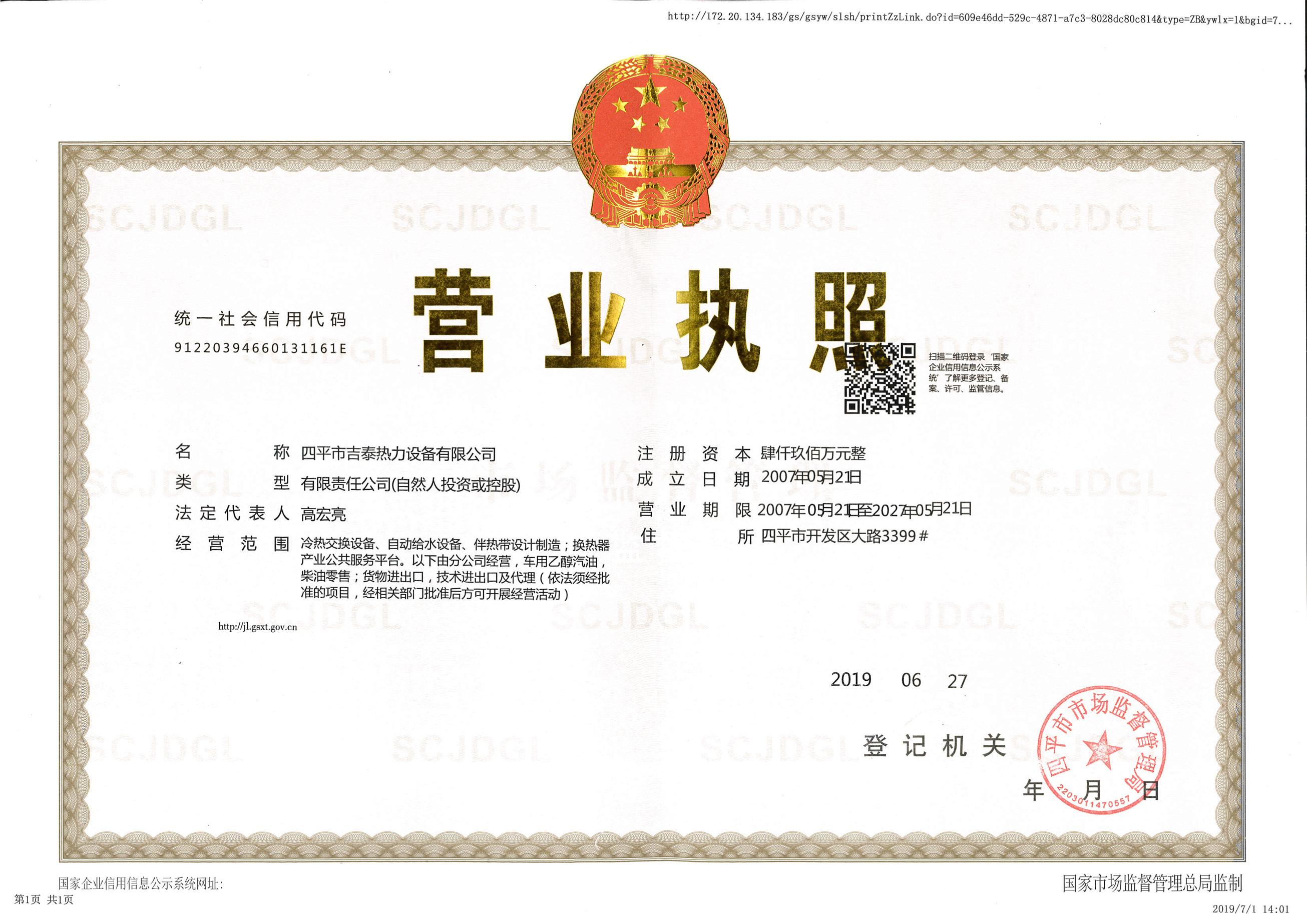 四平市吉泰熱力設備有限公司—危